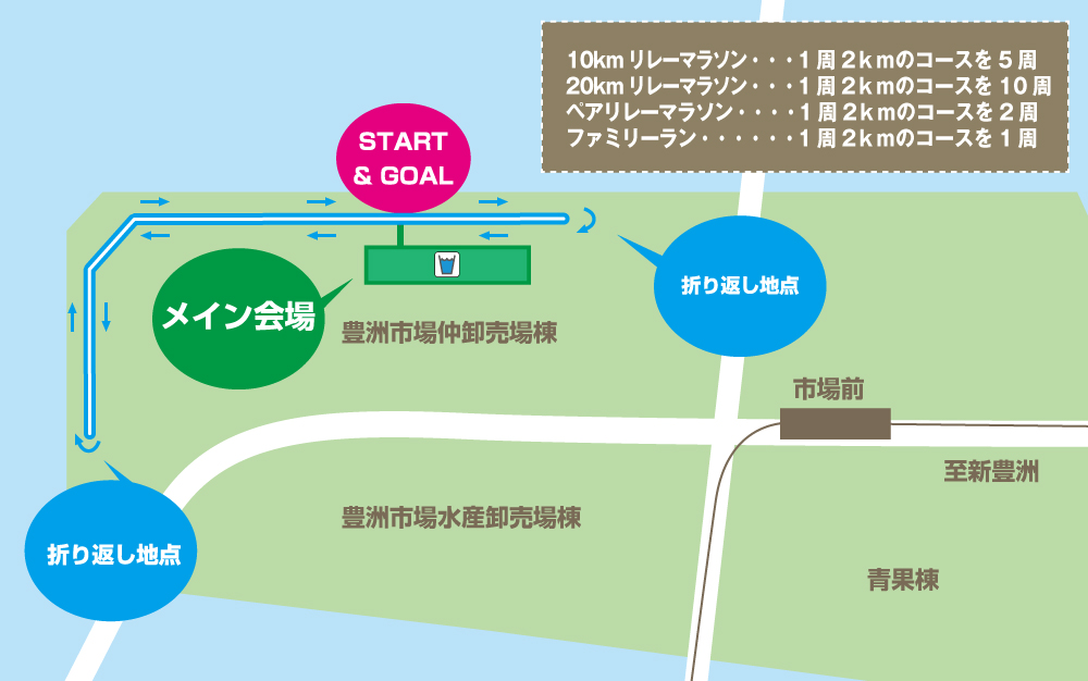 【東京大会】 受付時間:12:30〜15:10 開始時間:14:00 終了時間:18:00 <タイムスケジュール> 12:30 受付開始(各部門スタート20分前まで受付を実施) 13:45 「ファミリーランの部・ペアリレーの部」開会式 14:00 「ファミリーランの部・ペアリレーの部」スタート 14:15 「リレーマラソンの部」開会式 14:30 「リレーマラソンの部」スタート 17:00 競技終了 ※各部門スタート20分前までに受付をお済ませください。 ※各部門スタート15分前に競技説明を行います。 ※スケジュールは変更になる場合がございます。 【大阪大会】 受付時間:16:00〜18:10 開始時間:17:00 終了時間:21:00 <タイムスケジュール> 16:00 受付開始(各部門スタート20分前まで受付を実施) 16:45 「ファミリーランの部」開会式 17:00 「ファミリーランの部」スタート 17:15 「ペアリレーの部」開会式 17:30 「ペアリレーの部」スタート 18:15 「リレーマラソンの部」開会式 18:30 「リレーマラソンの部」スタート 21:00 競技終了 ※スケジュールは変更になる場合がございます。 |